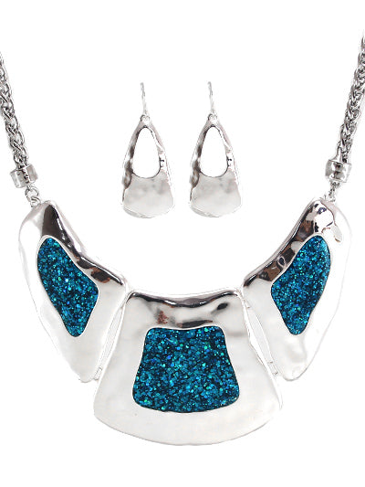 MARBLED METAL CHAIN TEAR DROP NECKLACE SET