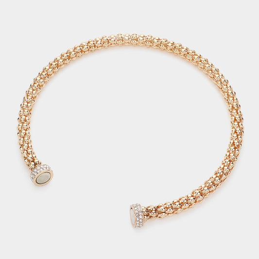 RHINESTONE EMBELLISHED METAL CHOKER NECKLACE