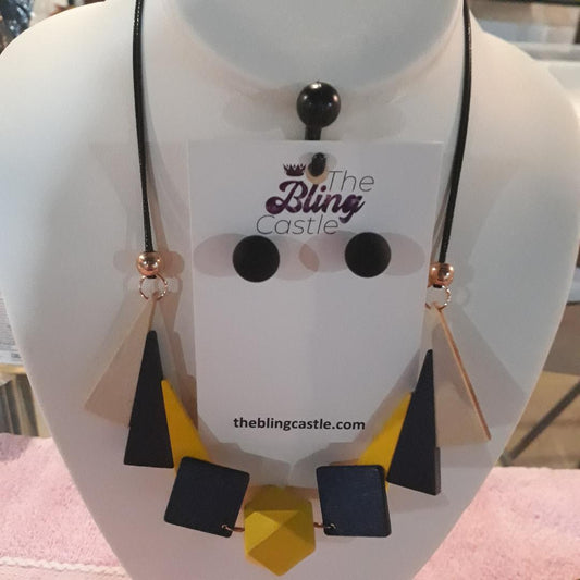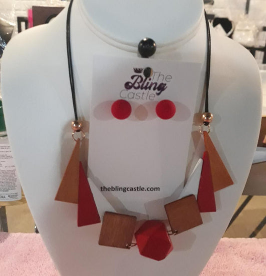 WOODEN COLOR BLOCK GEOMETRIC NECKLACE