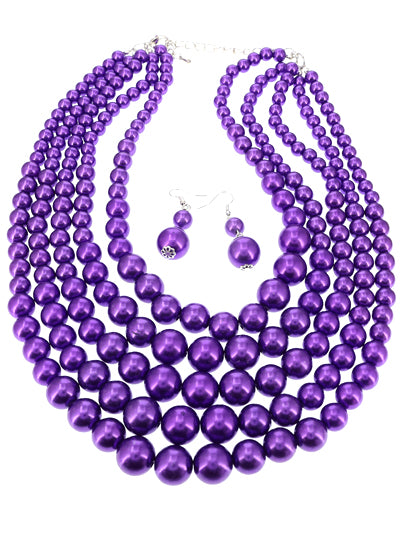 FASHION BEAD PURPLE 5 STRAND NECKLACE SET