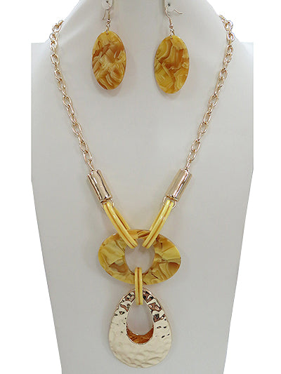 MARBLED METAL CHAIN TEAR DROP NECKLACE SET